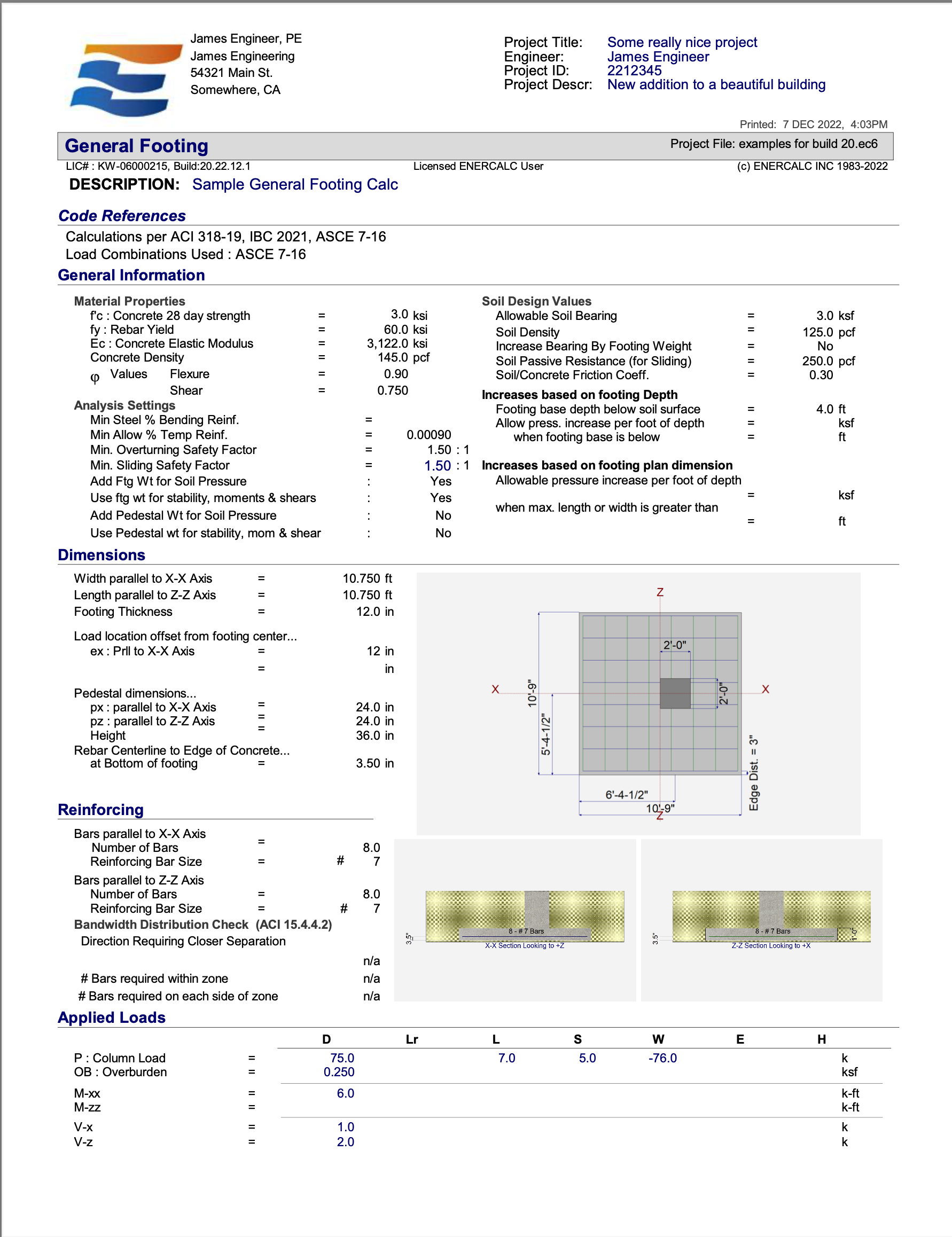 ENERCALC software provides well designed calculation reports for all of its modules. Using the full capabilities of modern printers we combine highly readable font styles with well laid out calculation reports and integrated graphics.
